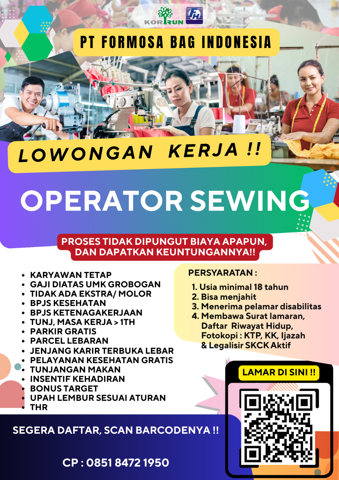 Segera daftarkan diri Anda dan jadilah bagian dari PT Formosa Bag Indonesia!