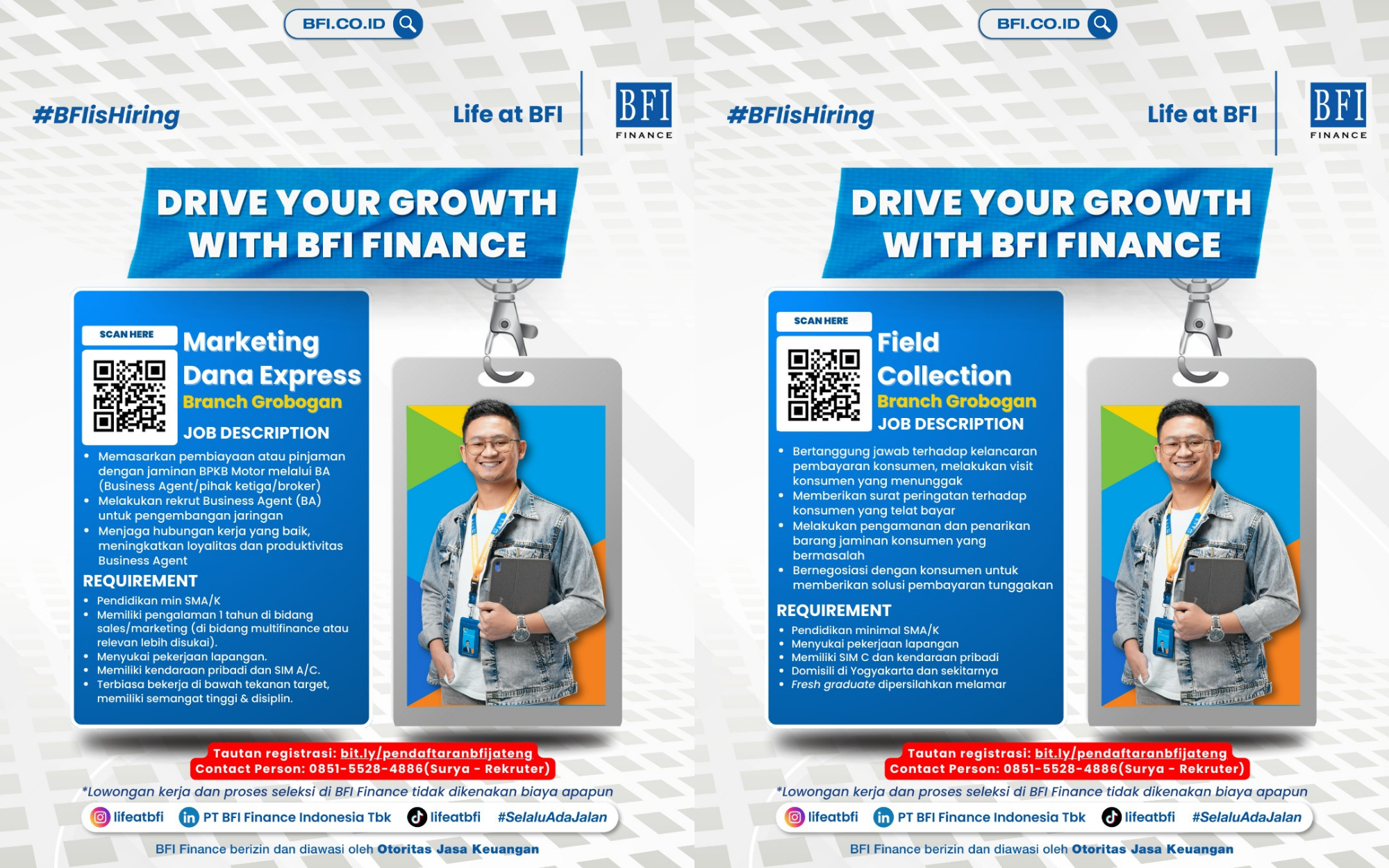 PT BFI Finance Indonesia Tbk membuka peluang karier bagi putra-putri terbaik Indonesia untuk bergabung dan berkembang bersama kami. Saat ini kami membutuhkan kandidat profesional, energik, dan berintegritas untuk ditempatkan di Branch Grobogan.